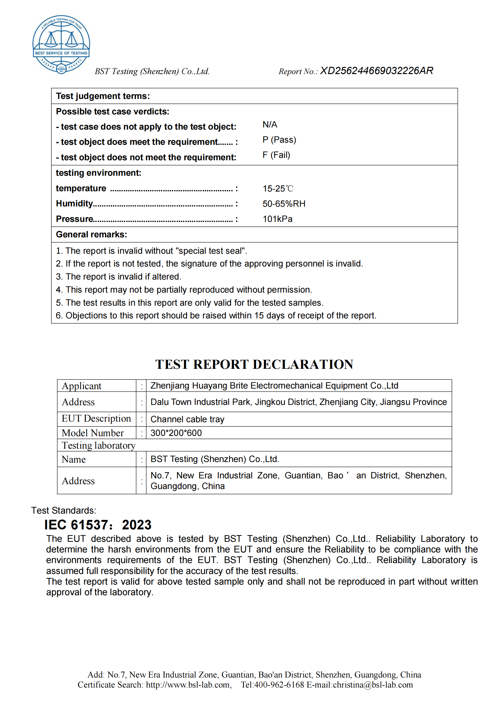 槽式电缆桥架IEC认证